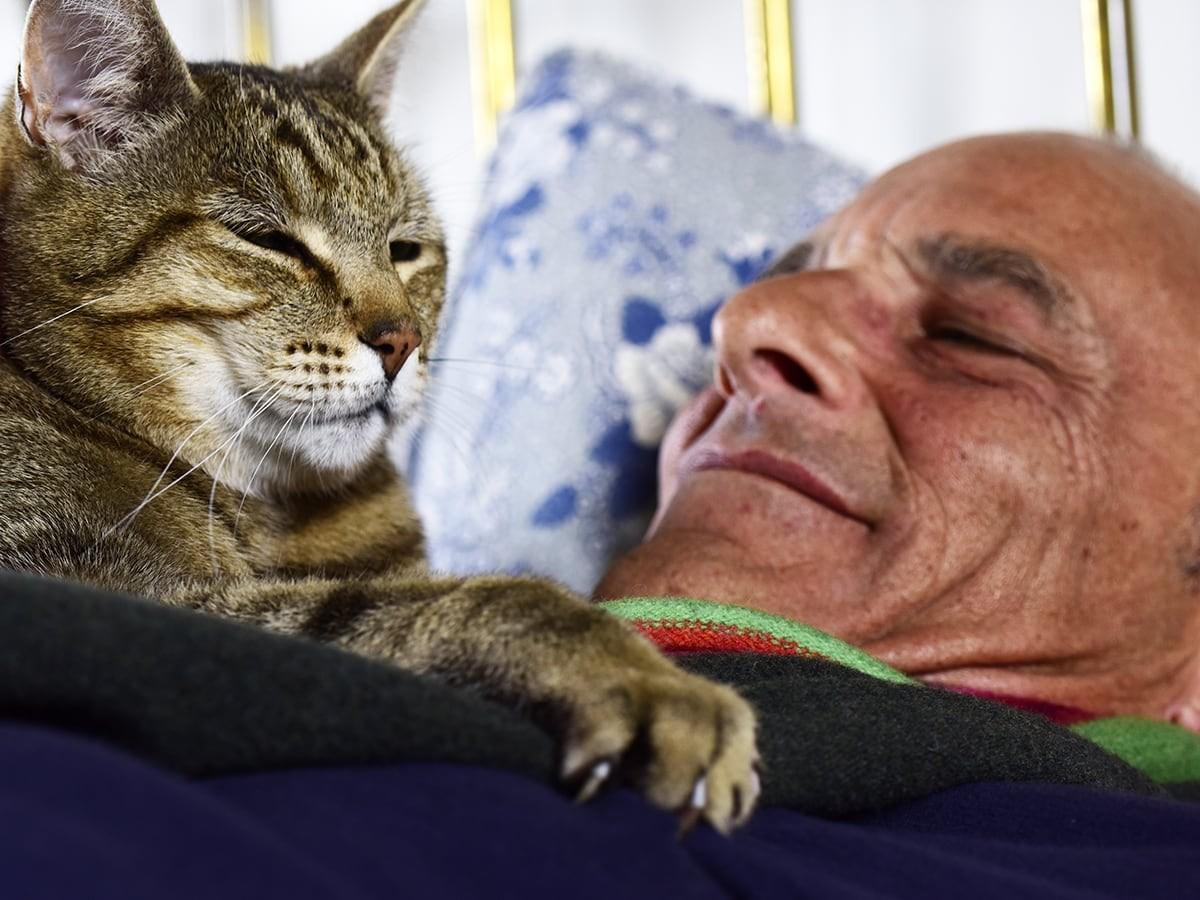 Many cats will knead an area that they are planning on laying down on to take a nap. Think of it as your cat adjusting their pillows and blankets like we often do before lying down. In fact, this is a behavior that is seen in feral cats as well, as many will knead piles of leaves or other “soft” places before lying down. If your cat is kneading you, it may mean they’re about to take a nap on you!